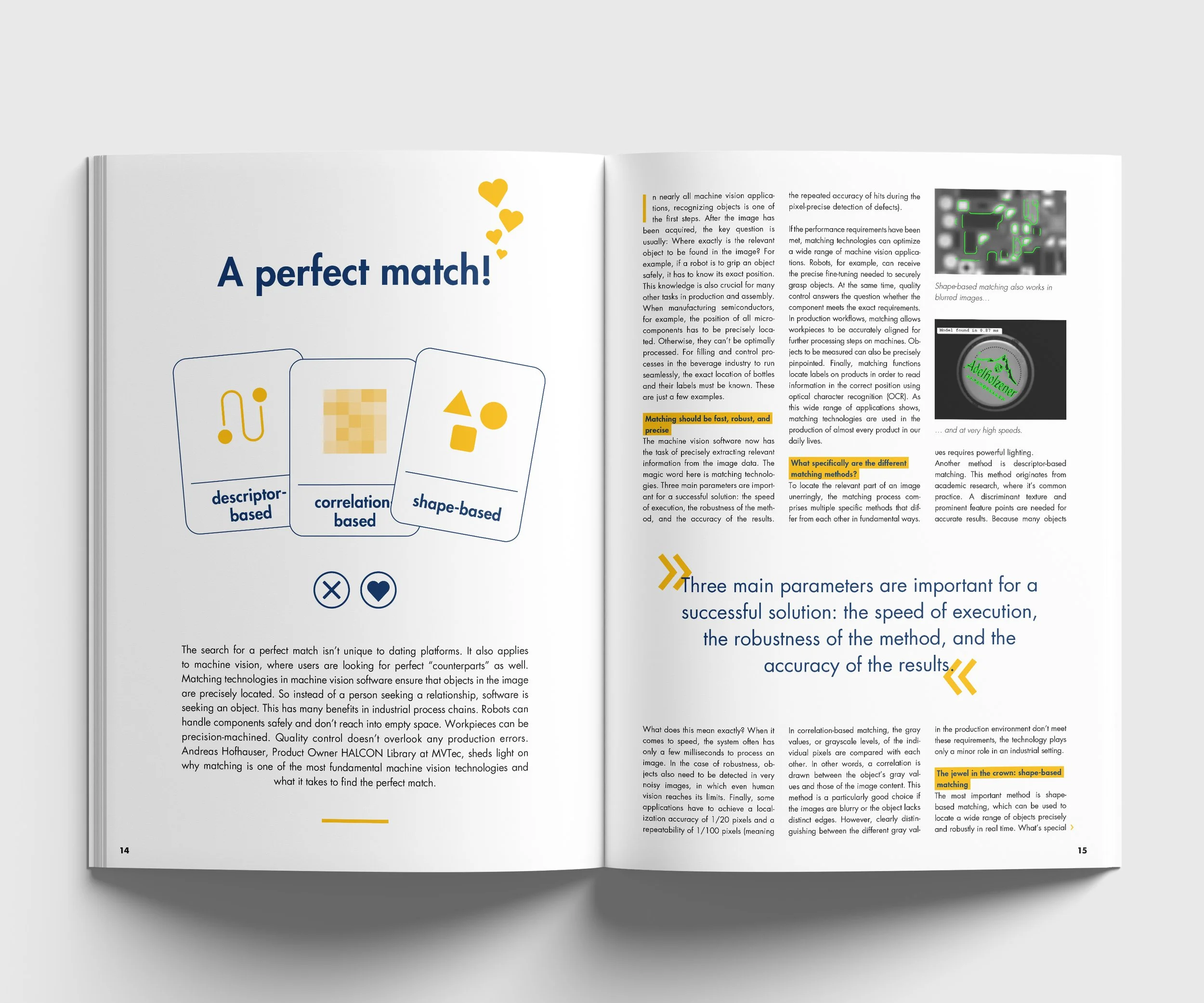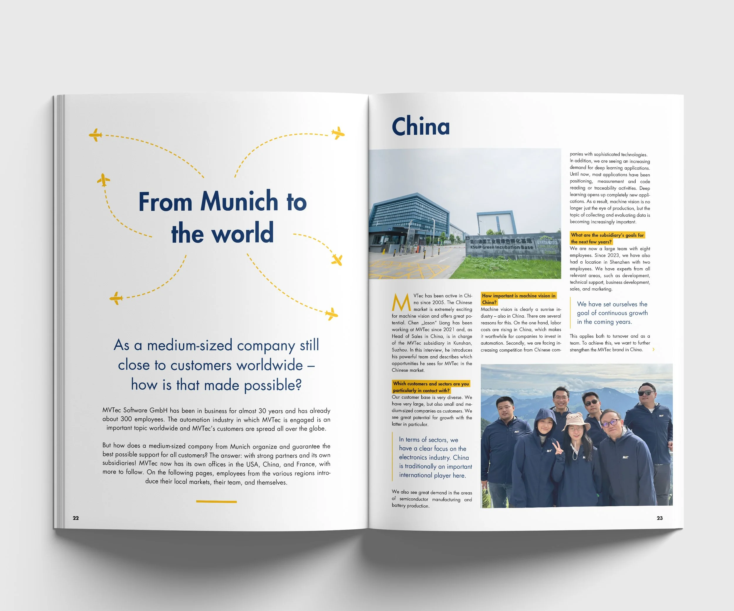 For MVTec – a leading provider of machine vision software – I created the editorial design for their corporate magazine Machine Vision Insights. The publication explores new technologies, applications, and trends in the field of machine vision. The goal was to visually reflect MVTec’s innovative spirit and technical expertise through a clear, structured layout, refined typography, and intuitive navigation. The first issue was published in 2023, with a new edition released annually since then.